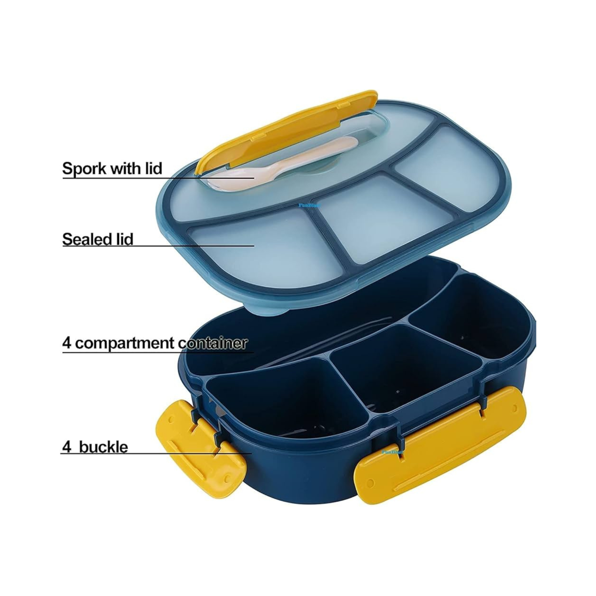- تحافظ الحاوية المكونة من 4 أقسام على فصل الأطعمة بشكل أنيق.