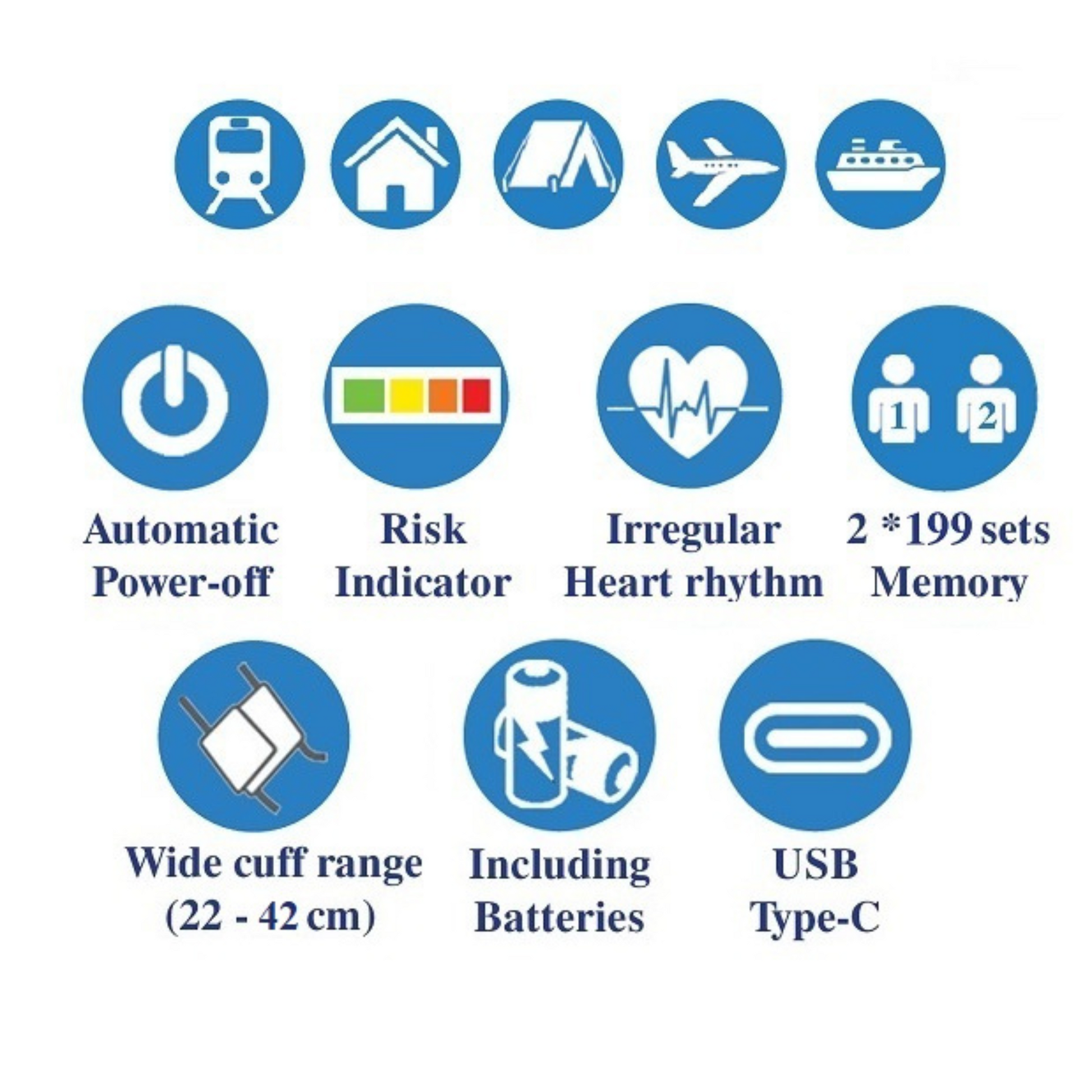 • Wide cuff range (22–42 cm) for different arm sizes